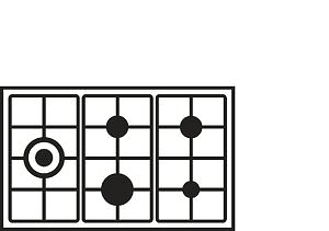 5 gas burners: 1 HP.C Gas Burner (Center) with 4 different sizes gas burners