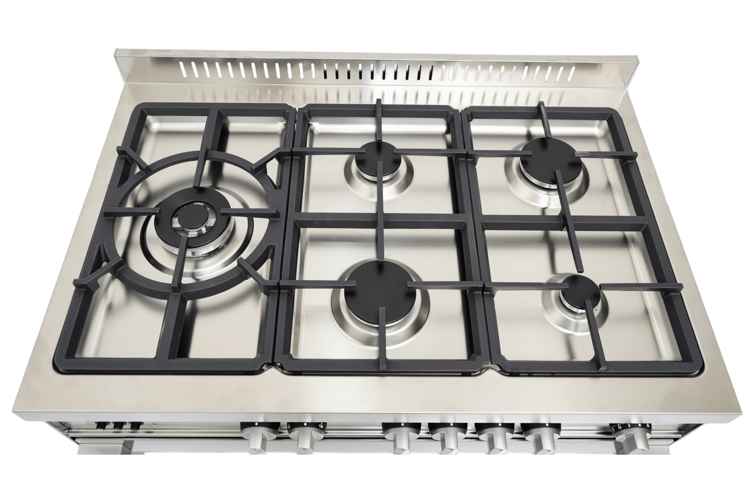5 gas burners: 2 HP.C Gas Burner with 3 different sizes gas burners